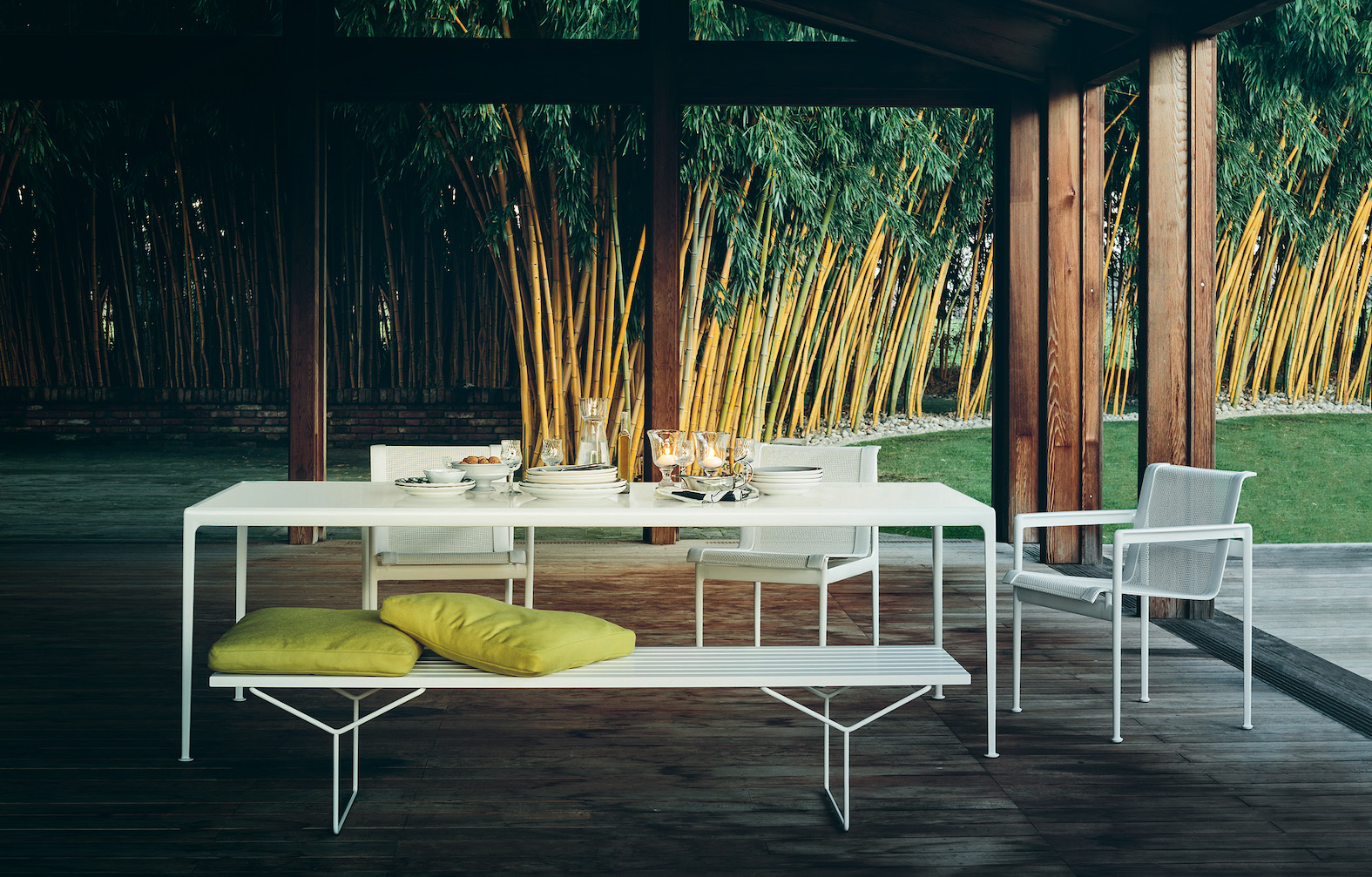 Na kolekcję ogrodową Knoll składają się: regulowany szezlong, krzesła, kilkuosobowe sofy oraz stoły i stoliki barowe. Można ją swobodnie dopasować do swoich upodobań estetycznych wybierając materiały wykończeniowe i kolorystykę. Opcjonalnie dostępne są specjalne podkładki i poduszki. Markę Knoll oferuje showroom MOOD. www.mood-design.pl